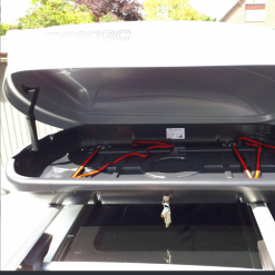 Diamond 450 è dotato di componenti innovativi che semplificano al massimo il montaggio e l’utilizzo. I pomelli presenti all’interno del box permettono di fissarlo saldamente alle barre portatutto mentre i ganci interni consentono di fermare il carico in modo stabile e sicuro. Il box è dotato inoltre di una serratura con chiusura a due punti e di un sistema di sicurezza brevettato con chiusura a scatto che consente di estrarre la chiave solo quando il coperchio del baule è completamente chiuso. L’installazione sul tetto avviene in modo rapido e direttamente in cava grazie al sistema di fissaggio standard con viti a T in dotazione che garantiscono una perfetta aderenza del box alle barre portacarico, assicurando l’integrità delle stesse.